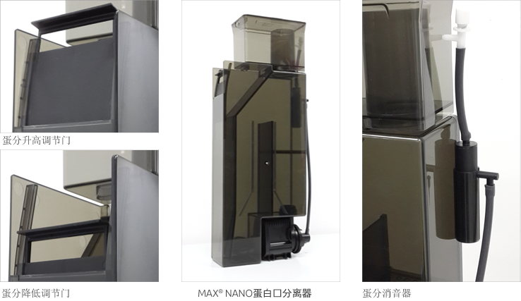 MAX® NANO配备一个电源中心,为蛋分泵和循环泵提供独立的on/off开关,让喂食和维护更方便。