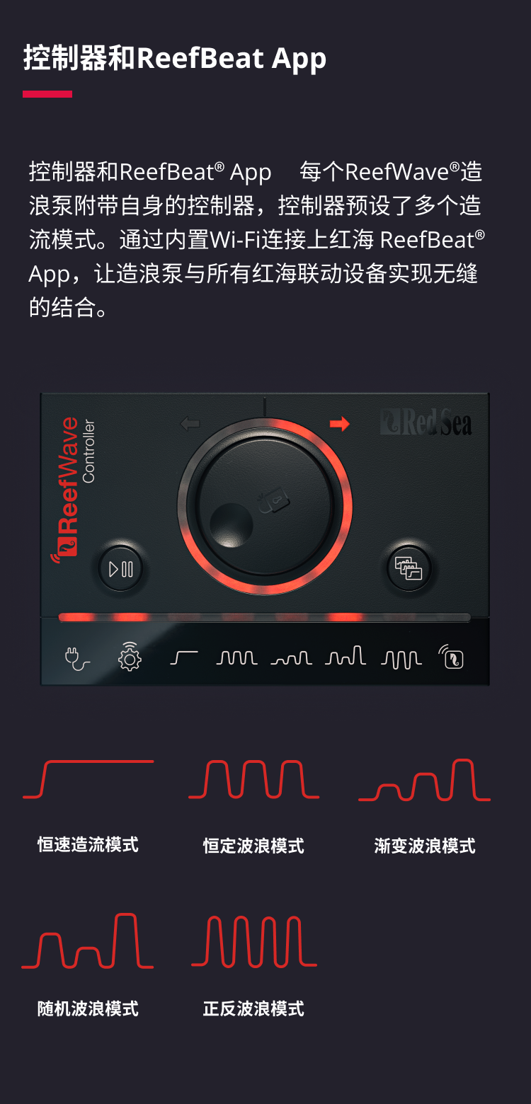先进,平稳的运行和高能效的正弦波电机驱动器相结合,在所有型号上均具有出色的减振支座和双轴承,这使得ReefWave成为几乎无声的脉冲泵。 您可以通过配有的专用控制器控制,也可以轻松通过红海的ReefBeat应用程序,连接内置Wi-Fi,远程控制每个ReefWave造流泵。