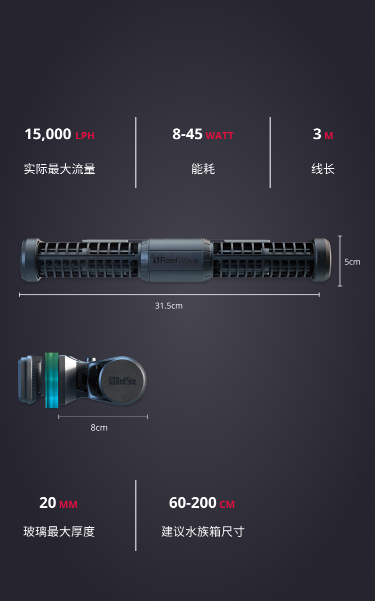 ReefWave®智能造流泵基于Gyre专利的环流技术,几乎静音,智能,功能强大且易于维护。 无论珊瑚在水族箱中的任何位置,它们都能为各种珊瑚提供理想的REEF-SPEC®水流。